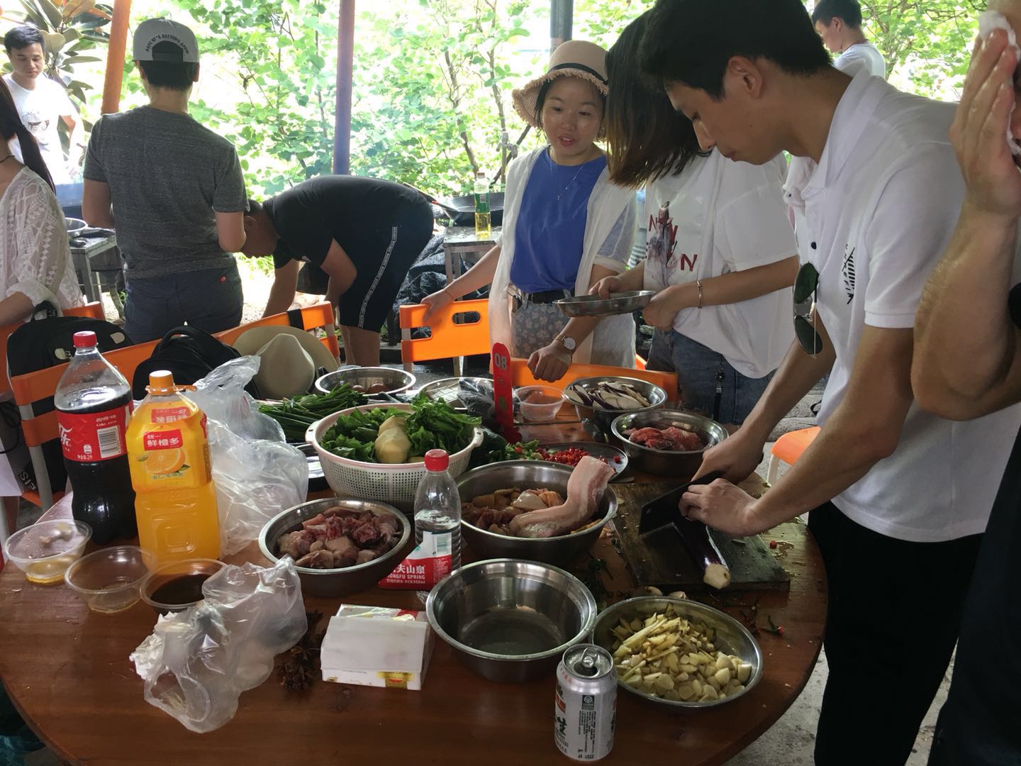 漂流過后,準備晚餐燒烤,同樣,按照分組準備食材,開始燒烤。