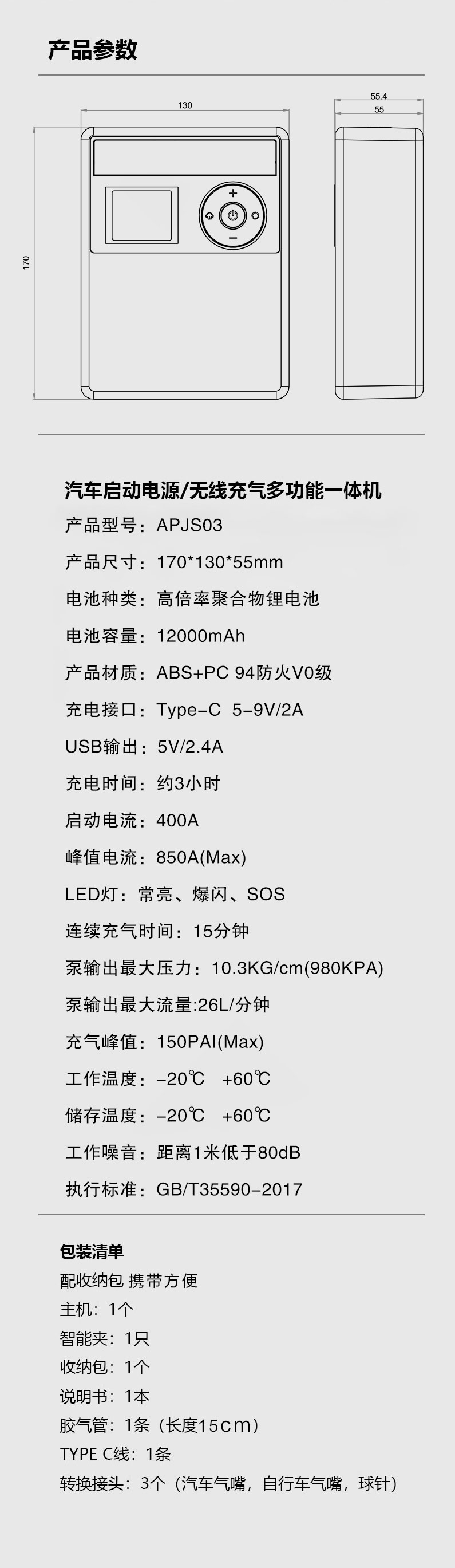 APJS-03汽車應急啟動電源打氣泵一體機